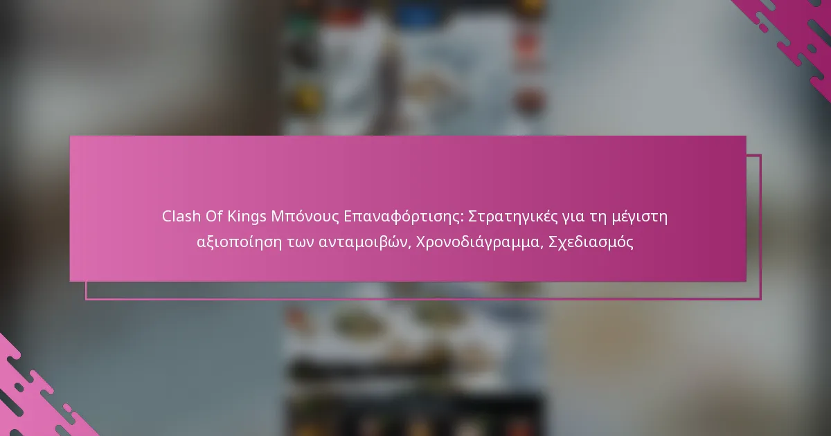 Οι μπόνους επαναφόρτισης του Clash of Kings προσφέρουν στους παίκτες πολύτιμες ανταμοιβές για την αγορά νομισμάτων ή αντικειμένων εντός του παιχνιδιού, ενισχύοντας τη συνολική τους εμπειρία παιχνιδιού. Για να μεγιστοποιηθούν αυτές οι ανταμοιβές, είναι ουσιώδες να σχεδιάζονται στρατηγικά οι αγορές και να χρονολογούνται γύρω από σημαντικά γεγονότα του παιχνιδιού. Κατανοώντας πώς να συνδυάσουν τους μπόνους και χρησιμοποιώντας μια λίστα ελέγχου, οι παίκτες μπορούν να αυξήσουν σημαντικά τα οφέλη που αποκτούν από τις επενδύσεις τους.